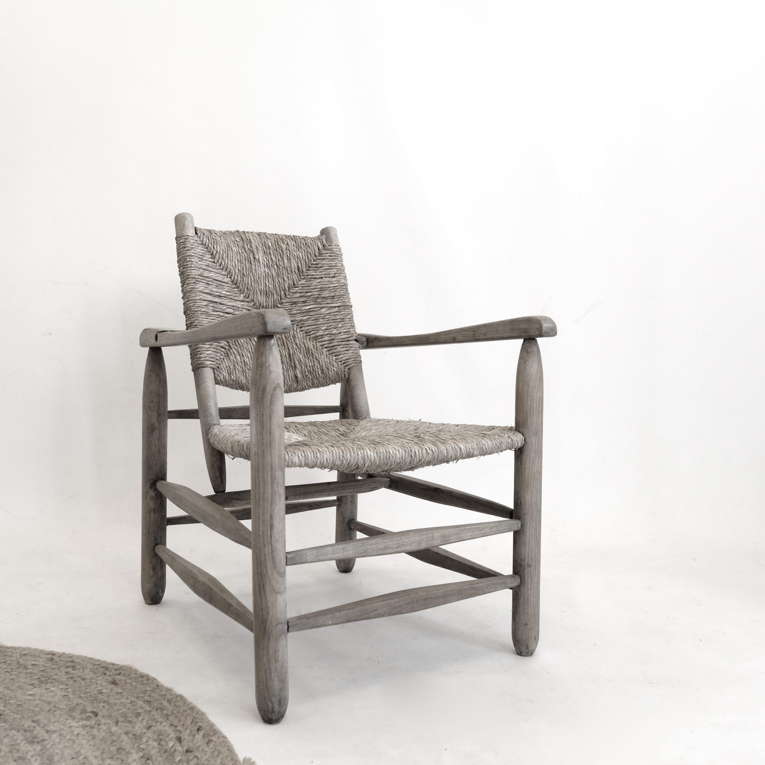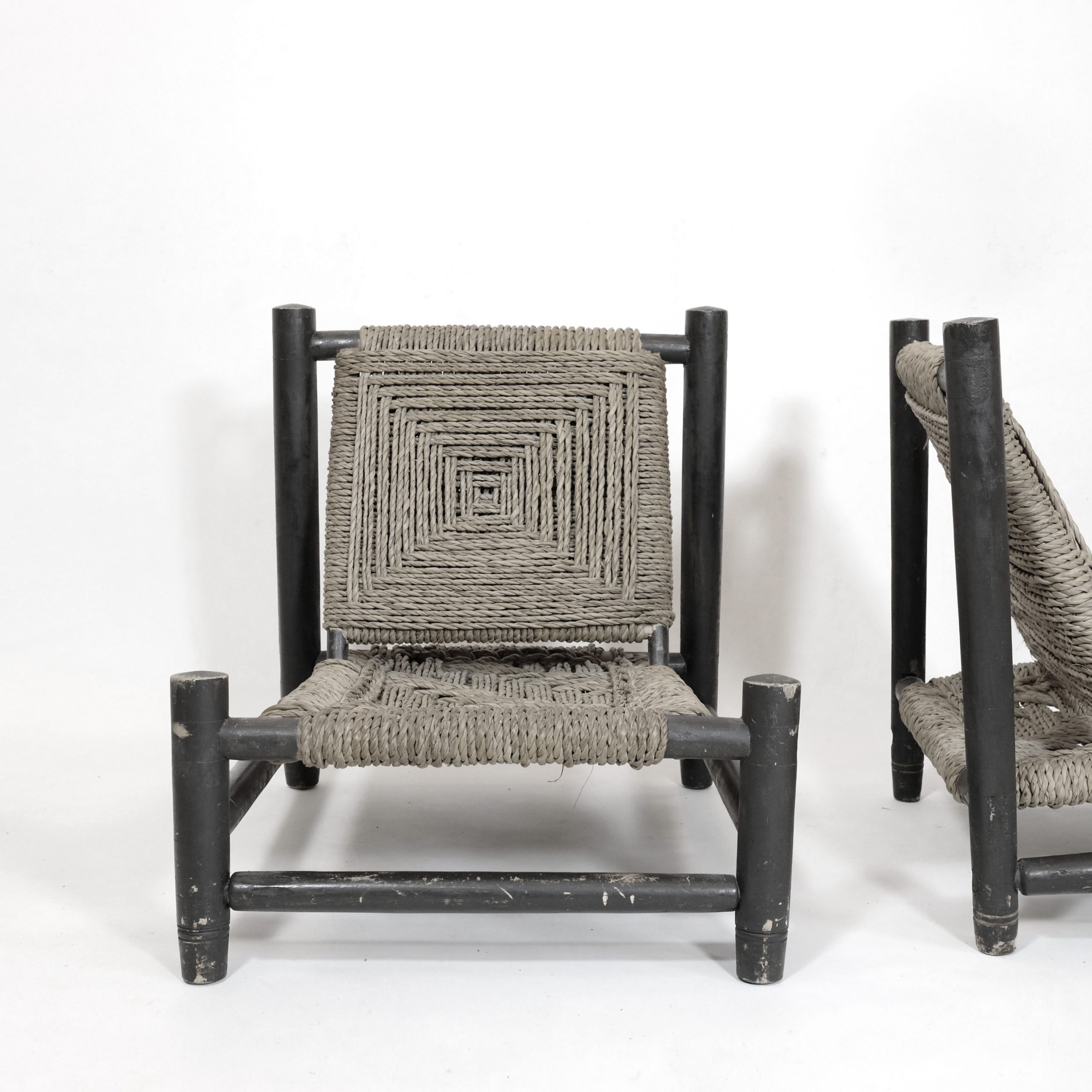 Fauteuil bas en bois naturel et corde tressée, n°1.